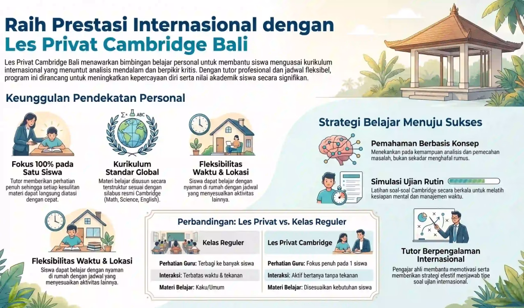 Les Privat Cambridge Bali membantu siswa memahami kurikulum internasional dengan tutor profesional dan metode belajar personal yang efektif.